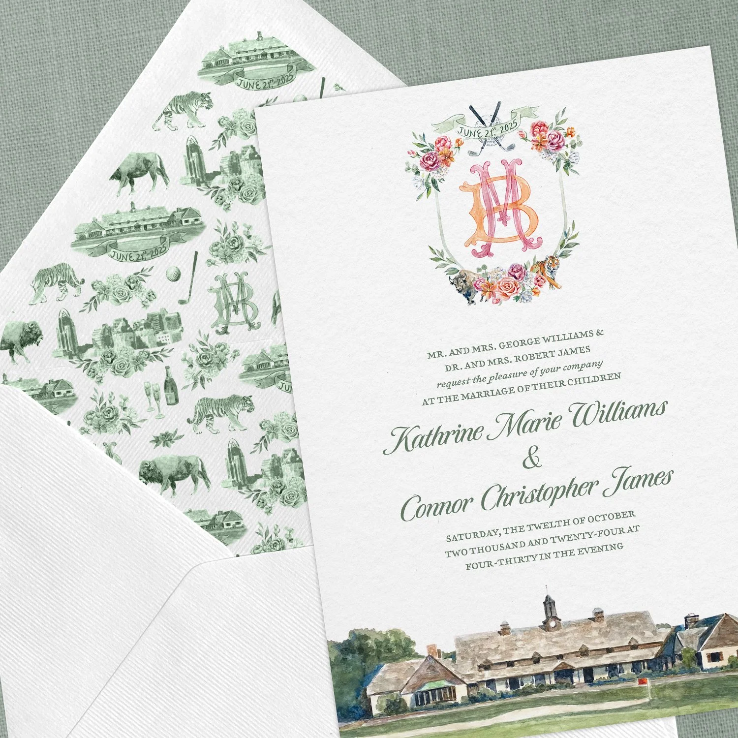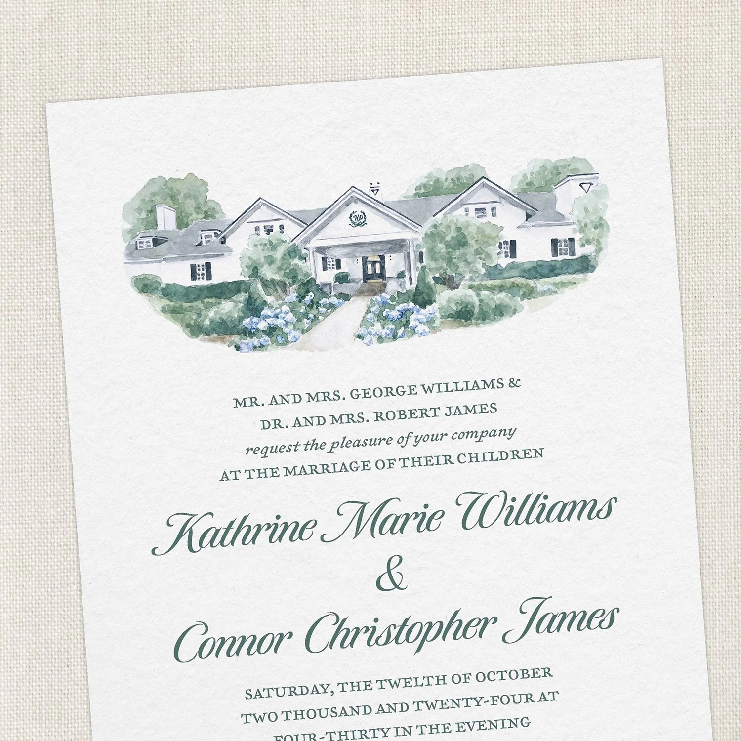 Digital download invitation with venue watercolor